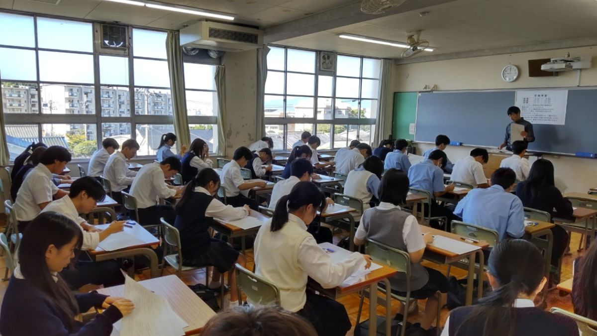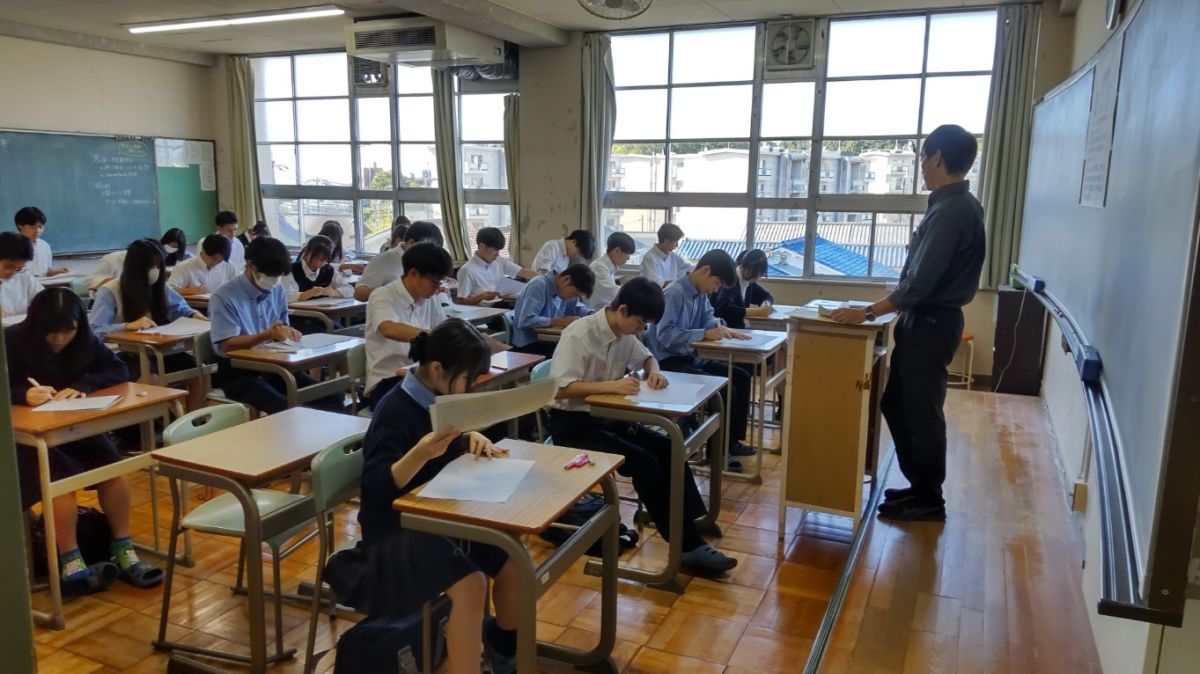 10月9日(木)から16日(木)まで、2学期中間考査を実施します。早朝から登校して最後の追い込みをかけている生徒、友人と問題を解き合う生徒、余裕でおしゃべりしている生徒など、試験開始前は生徒それぞれですが、考査開始前、監督の先生が入室すると教室は静まりかえります。静寂の世界、真剣勝負が始まります。本日より1週間、校内は生徒たちも先生方も考査に集中です。