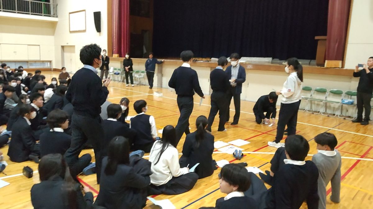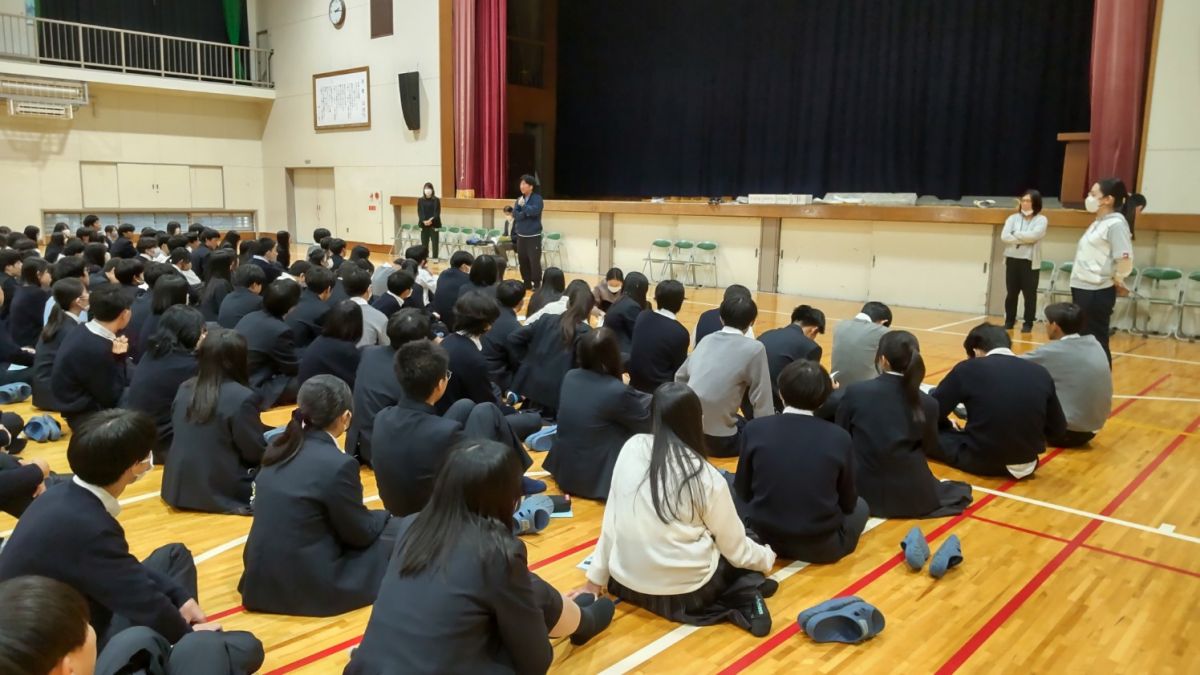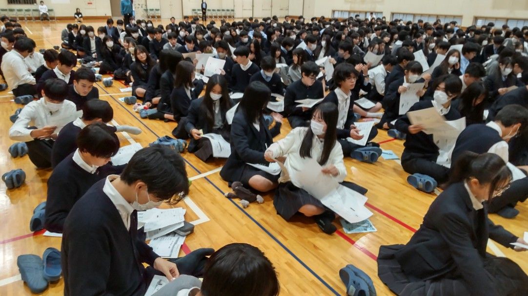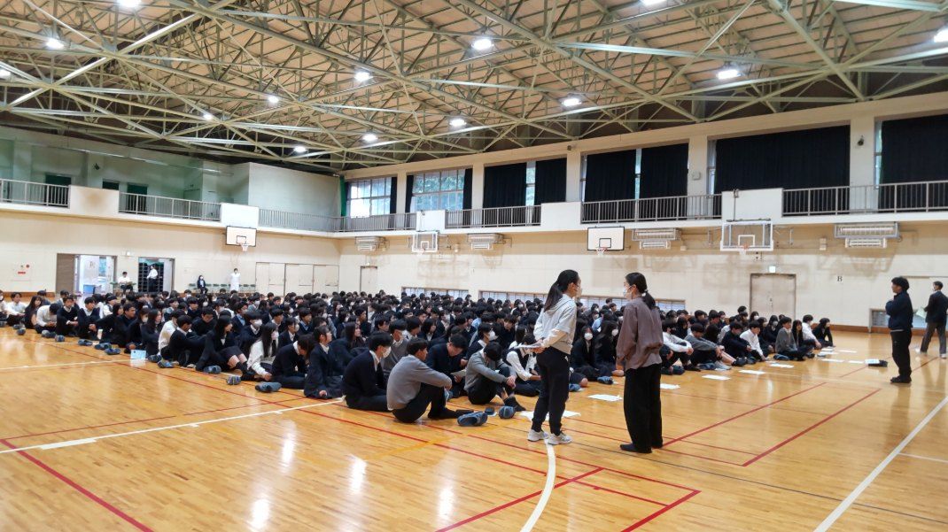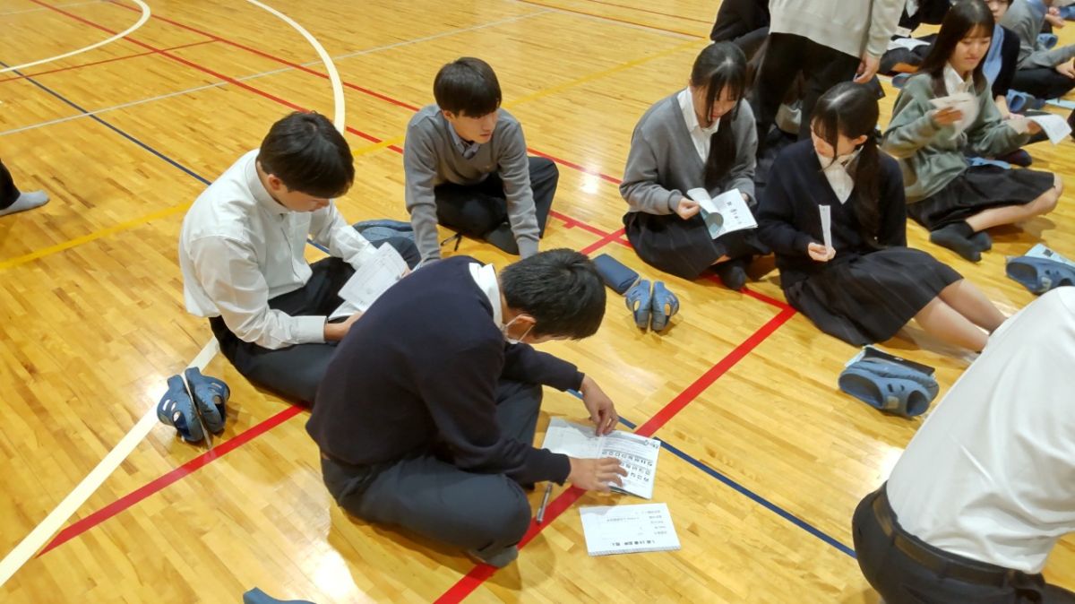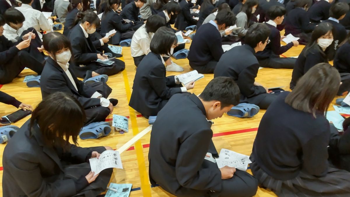 10月31日(金)6限に体育館で、48期生修学旅行結団式を行いました。高校生活の一大イベントである修学旅行が11月4日より始まります。16年ぶりの海外修学旅行実施です。私からは「修学旅行に向け、体調を崩さない、準備をしっかり、忘れもののないように。海外には300人を超える団体旅行はない(修学旅行は日本だけの文化)、成功させるために、時間厳守、団体旅行マナー、自分と仲間の安全を守るの3つを徹底してほしい」と話しました。その後、交流高校での体験に関して定員オーバーした「コーフボール」「台湾グルメ」については抽選を行うと発表があり、急遽、その場で抽選することに。該当する生徒たちはカードに名前を書いて提出。(最後に発表となりました。)続いて、修学旅行主担の先生から「部屋割り・選択体験・BS班・乗車バス」「オンライン入国カード」「関空快速乗車注意(後ろ4両は和歌山に行く)」「台湾には自販機がほとんどない」「両替は前日までに」「緊急連絡携帯電話番号」などの注意をしていただきました。最後に、学年主任の先生から、「きっちりするところはきっちりする。今回の修学旅行は異文化を学ぶ。相手の気持ちを考えて行動を。自主的に行動して楽しむように。」と海外修学旅行成功に向け、大切な心構えについてお話しいただき、結団式を終了しました。48期生のみなさん、思いっきり台湾を楽しんできましょう!