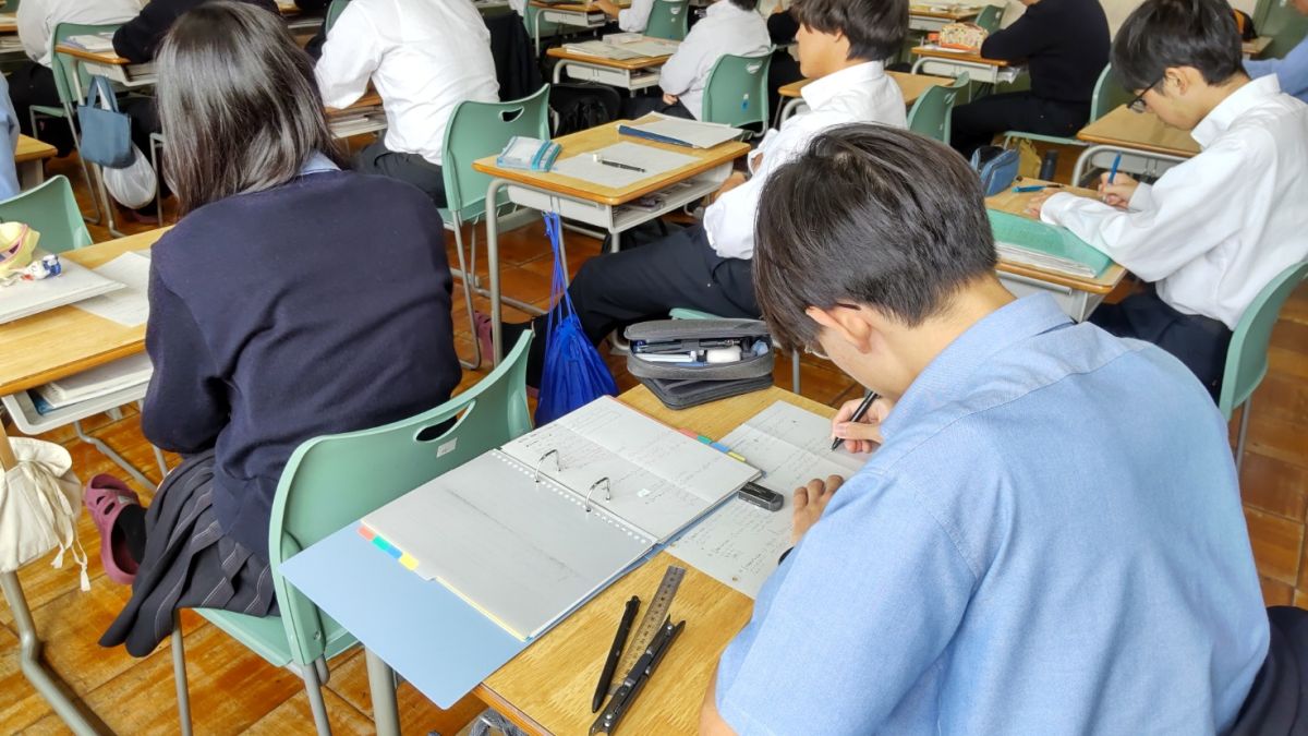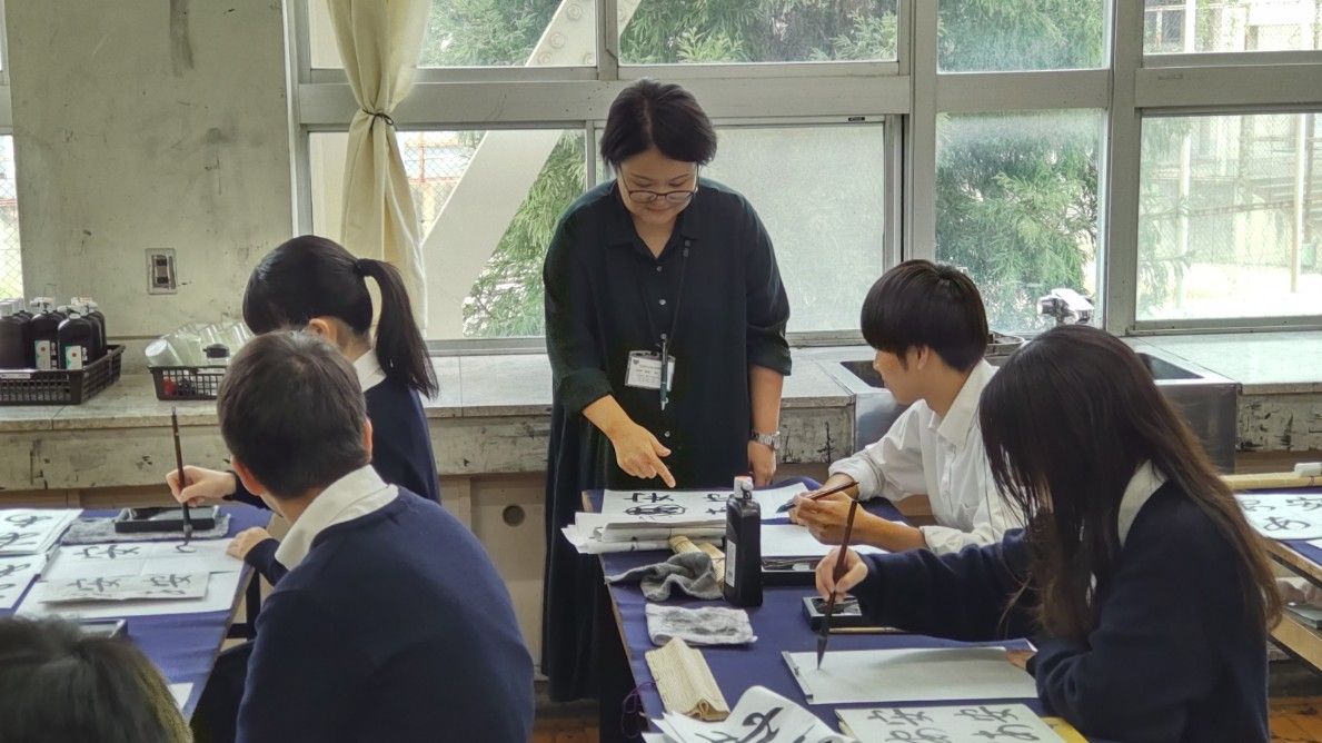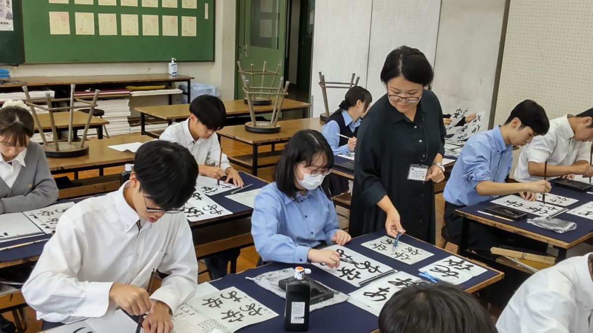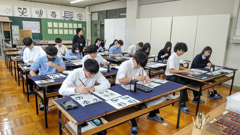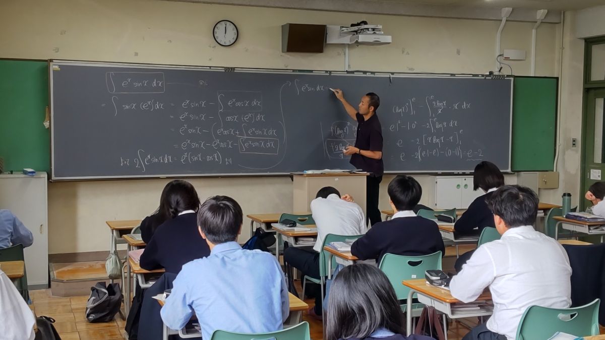 10月21日(火)2限に書道Ⅱ、4限に数学Ⅲの授業を見学しました。書道Ⅱは「草書」に挑戦。先生の説明を聞いて草書の特徴を理解すると生徒たちは作品に取り掛かります。姿勢もよく見事な筆さばきを見せる生徒も。静かで厳かな雰囲気の中、生徒たちは書の世界に浸っていました。数学Ⅲは「部分積分」の授業でした。文系の私にはまったくわからない。先生の板書を理解する生徒たちがこれまた偉大に見えました。生徒たちの集中力、見事です。