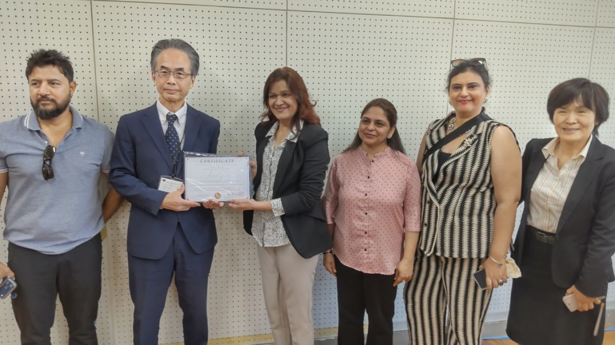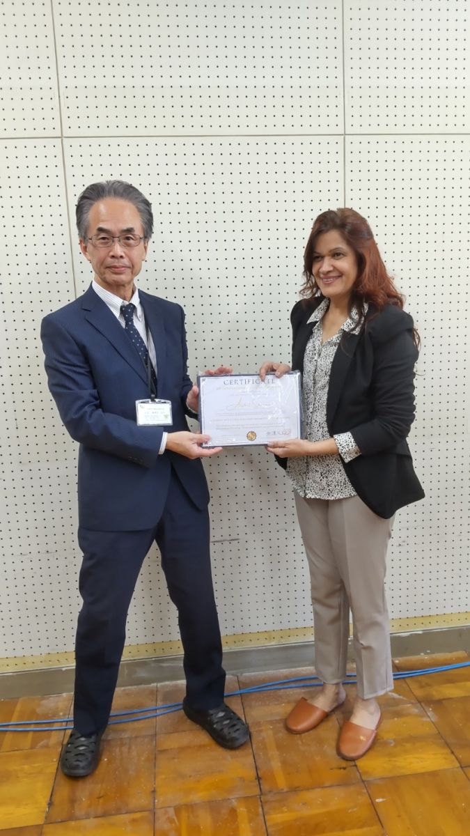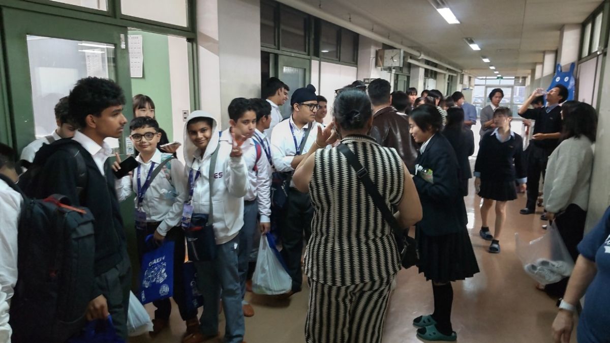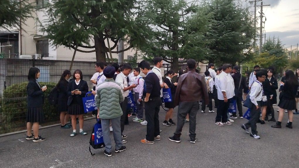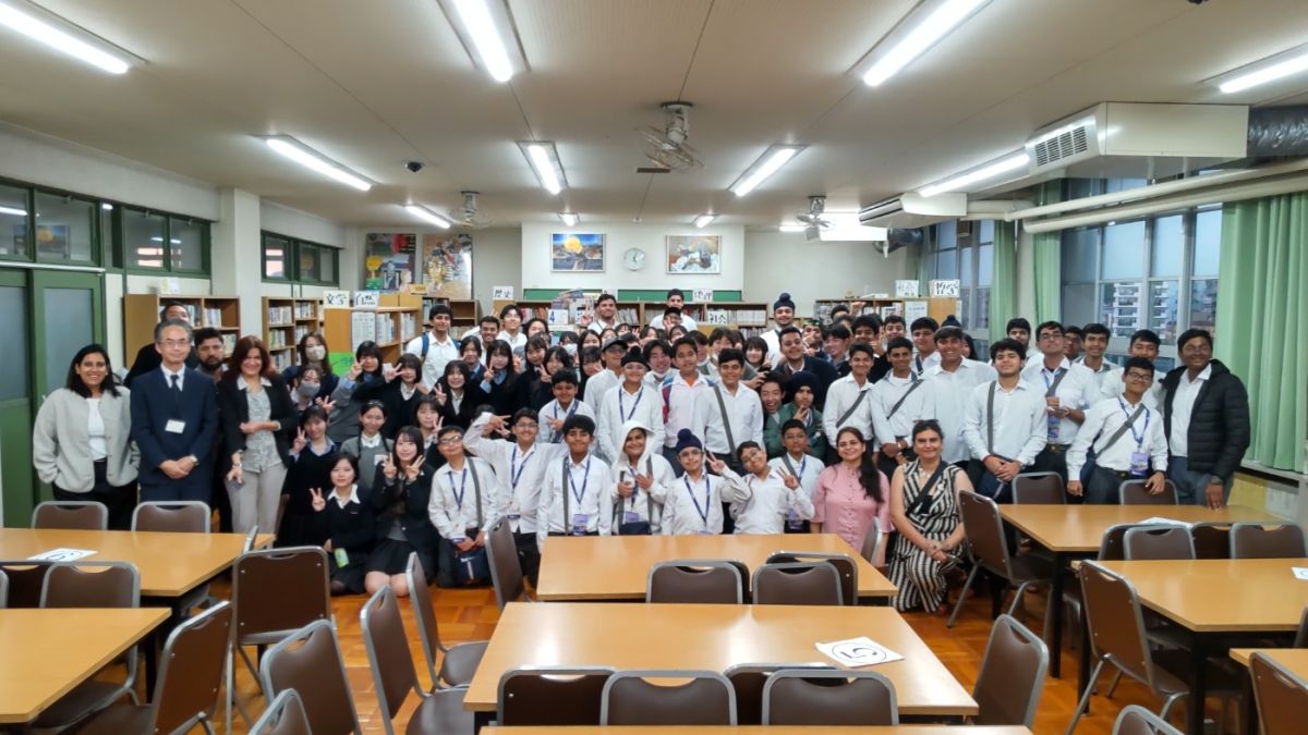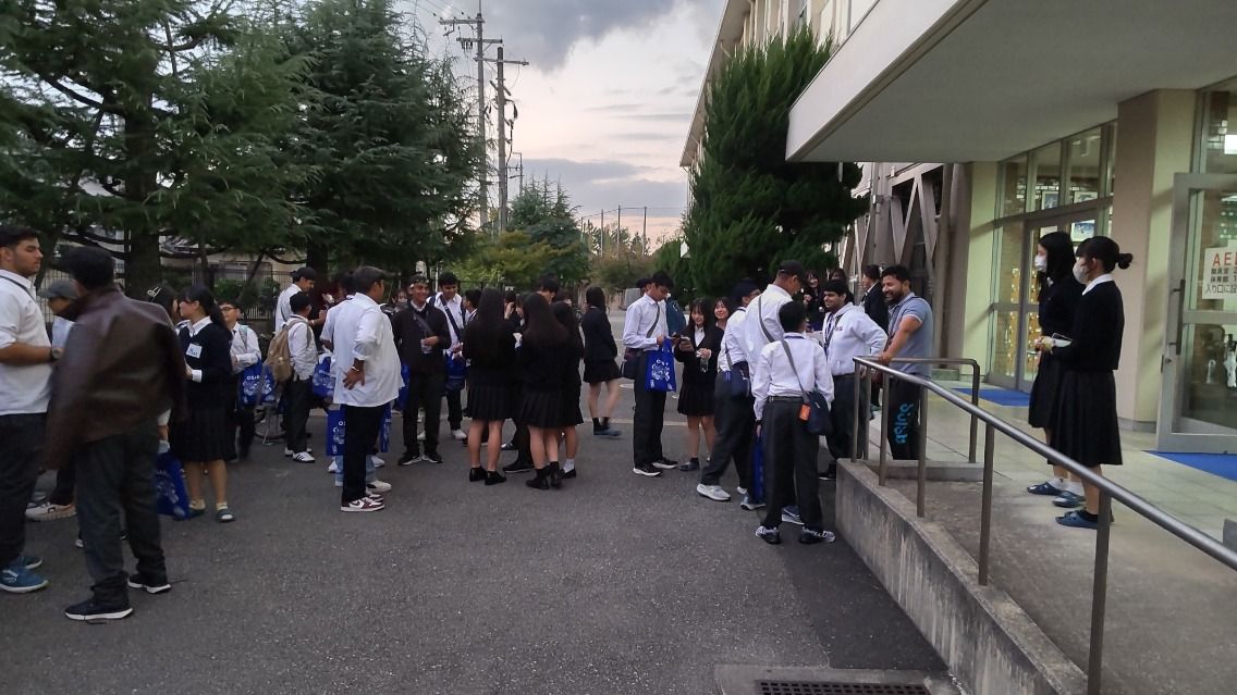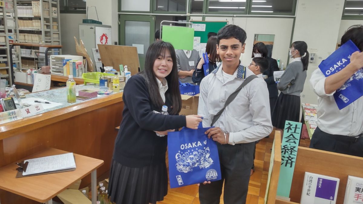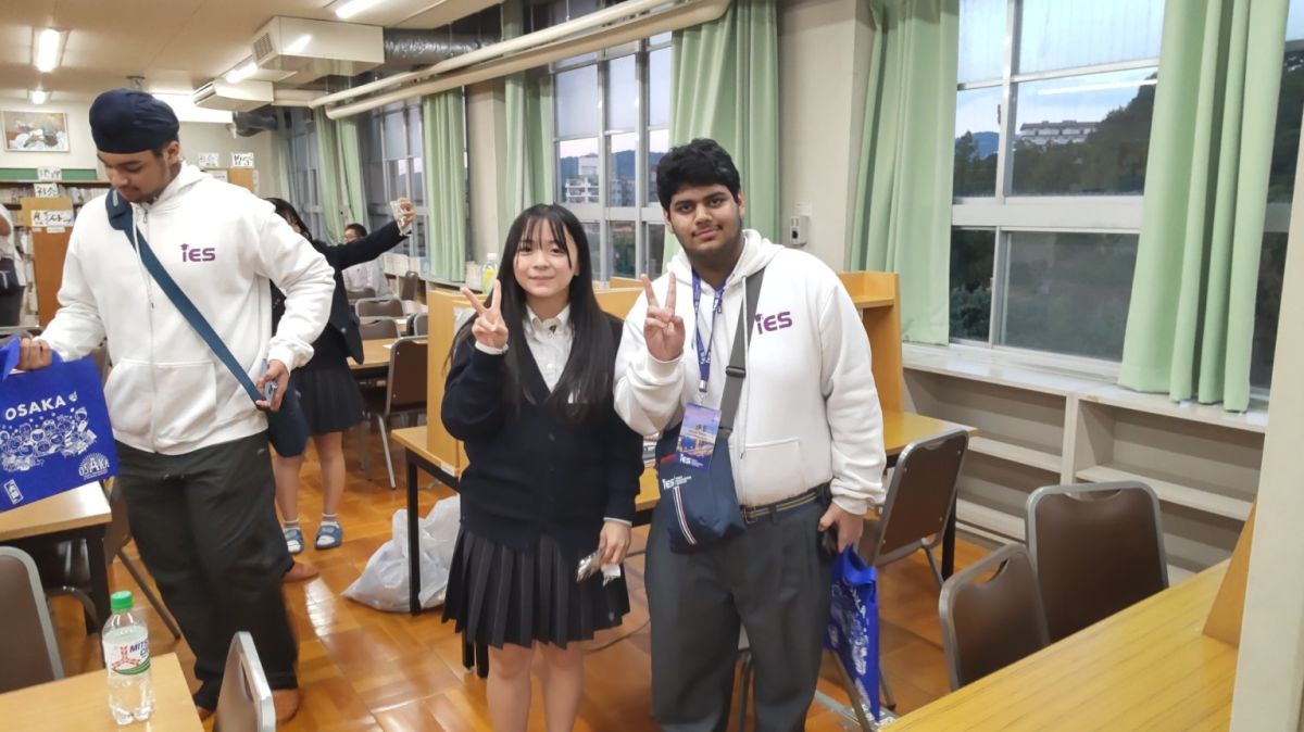 フリートークで大いに盛り上がり、気がつけば終了時刻の17時になっていました。急いで交流証明書の贈呈、全体記念写真撮影を行い、玄関までお見送り。本当に濃い交流ができました。来校していただいたのが11時ですので6時間も滞在してもらったことになりますが、そんなに時間が過ぎたとは全く思えませんでした。国際交流委員の先生の素晴らしい計画のおかげです。セントジョンズ高校の先生も感激され、「是非、インドに来てほしい。学校交流しましょう。」と言っていただきました。校門で解散したのですが、10名の生徒が蛍池駅近くのバス到着場所まで見送りに来てくれました。最後の最後まで思いやりをもって接することができる刀根山生のいいところをまた見させてもらいました。