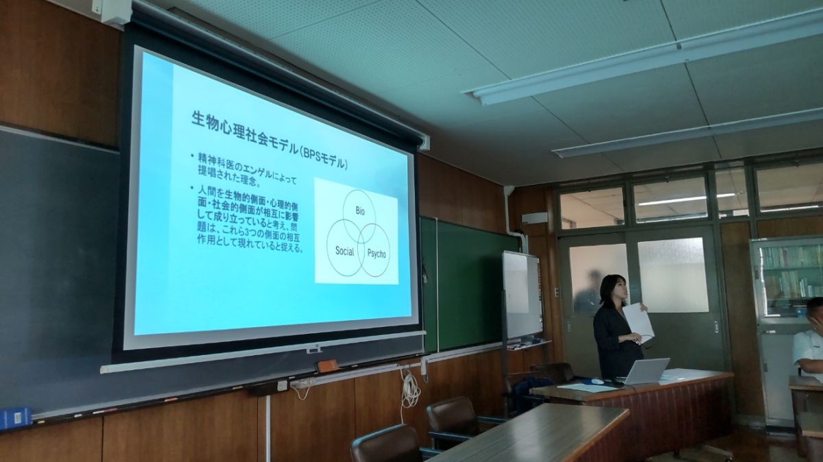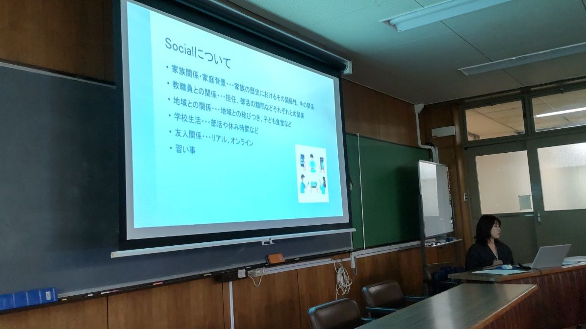 10月2日(木)15時35分から17時まで、種智院大学講師の福井未来先生をお迎えして、「教育相談研修会」を行いました。「生徒も自分も大切に~困りごとに寄り添う方法」テーマに、生徒も教員も困りごとに対してどのように寄り添っていけばよいか、教育相談の大切な観点についてご講演いただきました。BPSモデルによる事象の立体化、話の聴き方のポイント、障がいのとらえ方、先生方のストレスチェックなどについて、事例検討、ワークショップを行いながら理解を深めていきました。福井先生は小中高のスクールカウンセラーや市役所の発達相談員も務められるなど、現場での対応も豊富な方で、より実践的な見立てやアドバイスをしていただき、今後の教育相談に活かすことができる有意義な研修となりました。