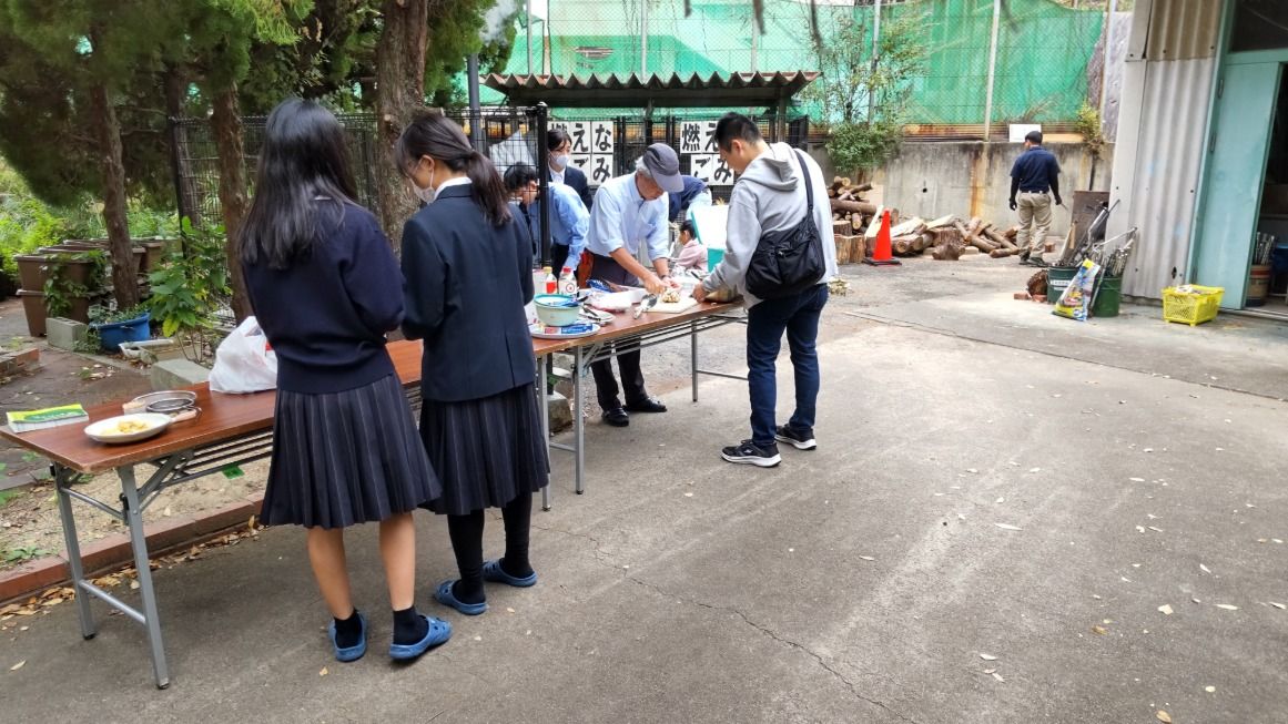 10月25日(土)、生物エコ部の生徒たちが、学校説明会に来ていただいた中学生のみなさんに部活動の様子を見ていただこうと早朝から登校して準備していました。生物室で飼育する生き物や研究について説明する部員のほかに、中庭では「燻製づくり」を担当する部員たちが材料を整えたり、火加減を見たりと大忙し。説明会の合間に様子を見に行くと、できたてのナッツの燻製と今年農園で収穫したサツマイモのポテトチップをすすめてくれました。どちらも美味。燻製づくりもどんどん上手くなっています。