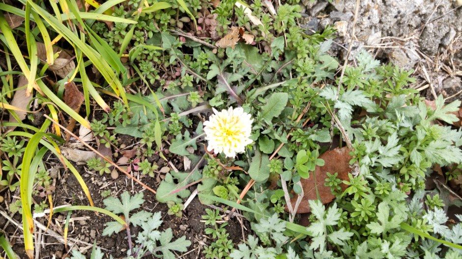 刀根山高校の正門前にある「山ケ池公園(通称ABC公園)」の土手に「白花蒲公英(タンポポ)」が咲いていました。タンポポは普通、黄色ですが、白花もあります。本校西斜面下の校地は元阪大薬学部の薬草園跡ですが、白花タンポポの群生地です。その種がABC公園にも飛んで行ったのでしょう。朝晩はまだまだ寒いですが、春はもうすぐです。