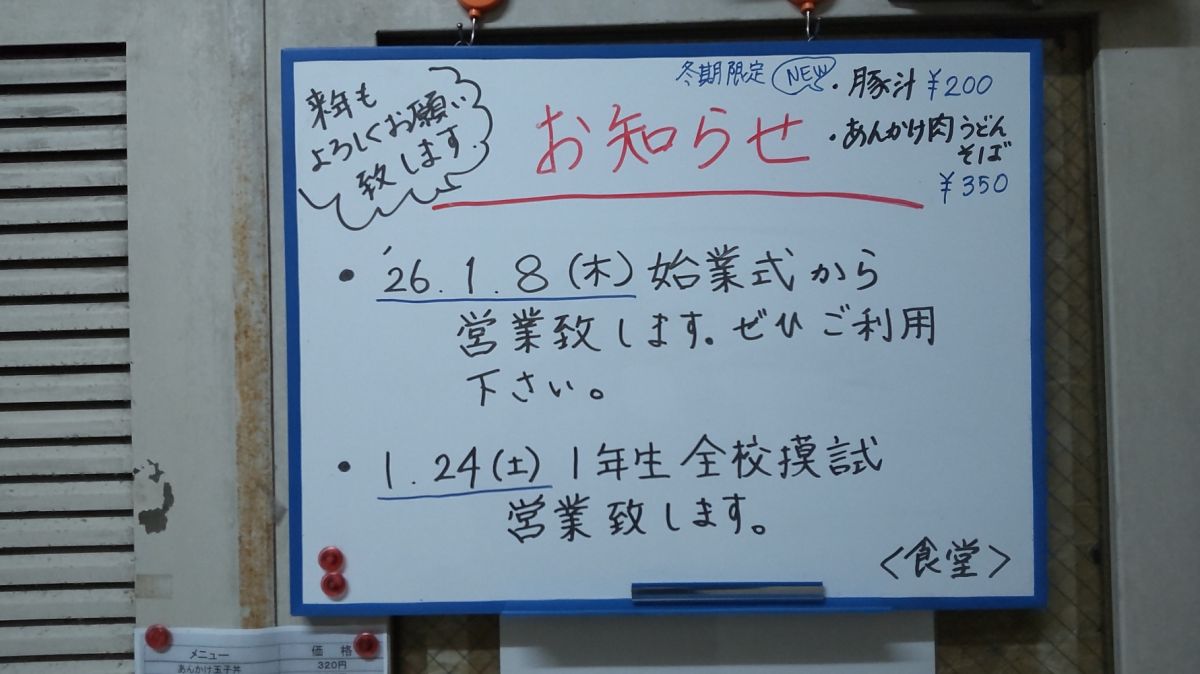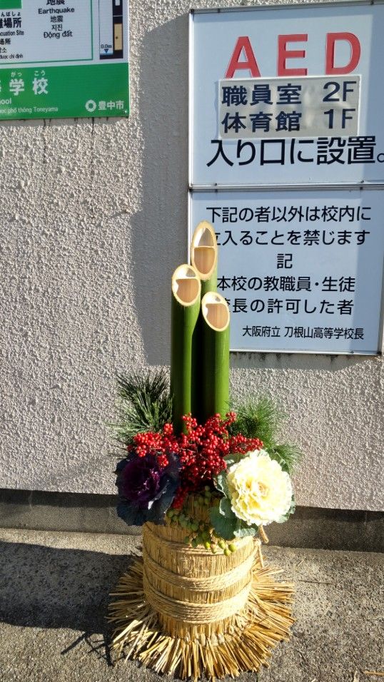 冬休み中も本校では講習や部活動のほか、大会の会場校になるなど、終日賑やかです。活動終了時に部室の大掃除をしていた部員に声をかけると「今年も頑張りました。良いお年を」と元気に挨拶してくれました。正門前には生物エコ部か作ってくれた大門松が飾られ、本校も新年を迎える準備ができました。みなさま、今年も大変お世話になりました。来年もどうぞよろしくお願い致します。良いお年をお迎えください。