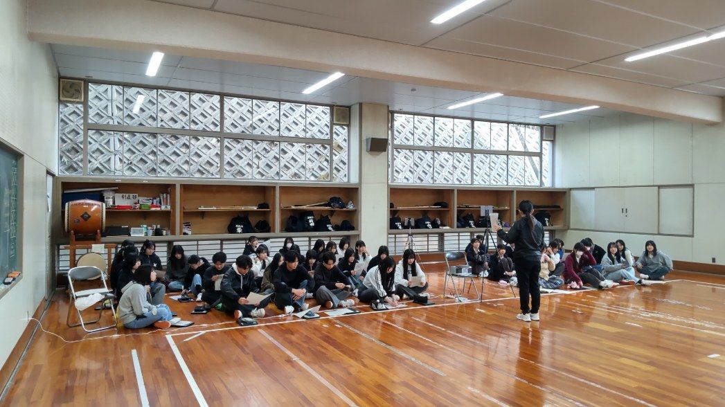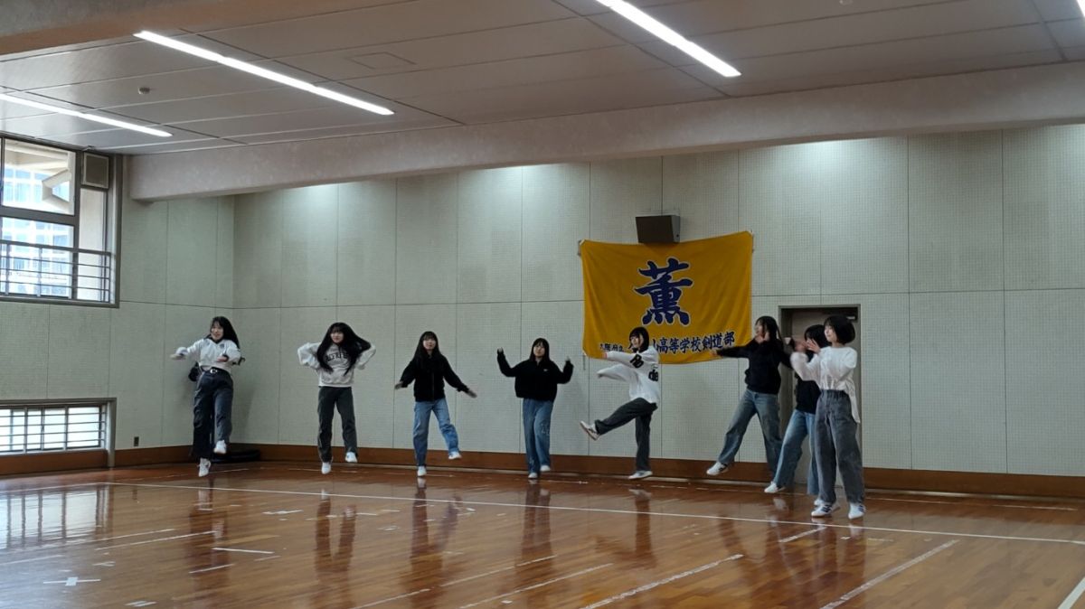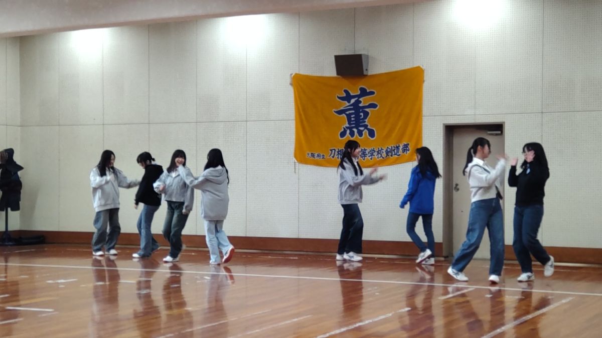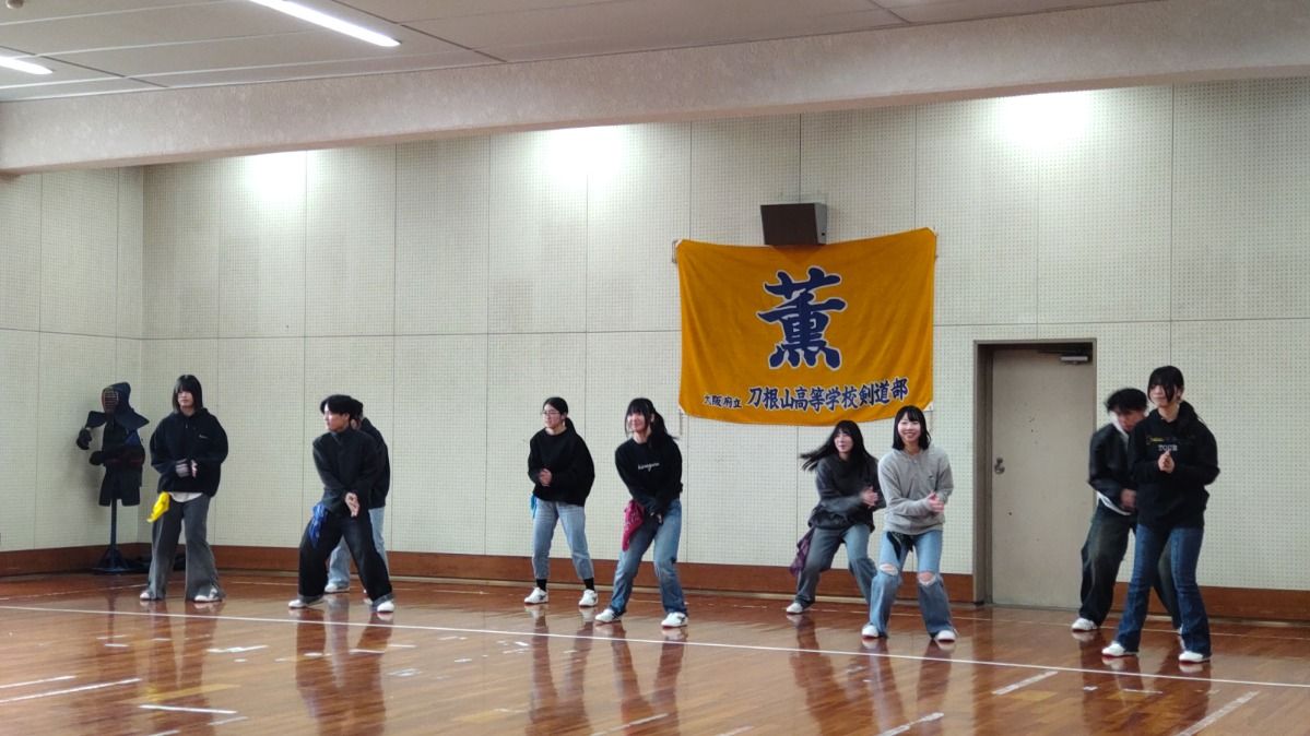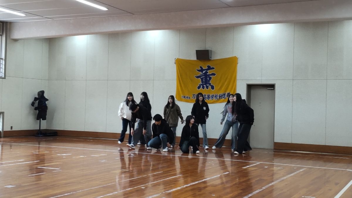 2月12日(木)5限、「2年生創作ダンス発表会」が剣道場にて開催されました。2年生では2月10日(火)から13日(金)まで、各クラスの発表会が行われます。本日は5組・8組の発表。五つの班が発表しましたが、班の「名前」も『テーマ』も大変ユニーク。1班「Link」『友情』2班「ヒトミシリ」『不思議の国のアリス』3班「Angel sugar」『アイカツ(アイドル活動)』4班「オタクとアイドル」5班「他人任せ」『ヒーロー』。今日までいろいろなドラマがあったと思いますが、どの班も最後は全員の息がぴったりそろった見事なダンスを披露してくれました。演技中は笑顔を一生懸命作っていましたが、終わった後は、やり切った感満載の笑顔になっていました。演技する時も見る時も、少しも気を抜かず真剣なまなざし。終わった後の拍手もお互いの健闘を讃える爽やかなもの。頑張る高校生の姿は本当に素敵です。この空間に一緒にいさせてもらってとても幸せでした。年々、グレードアップする2年生創作ダンス。刀根山高校の名物の一つになっています。全クラス見たいのですが、会議や応接があり、一部のクラスだけになってしまい、残念!見に行くことができないクラスのみなさん、ごめんなさい。