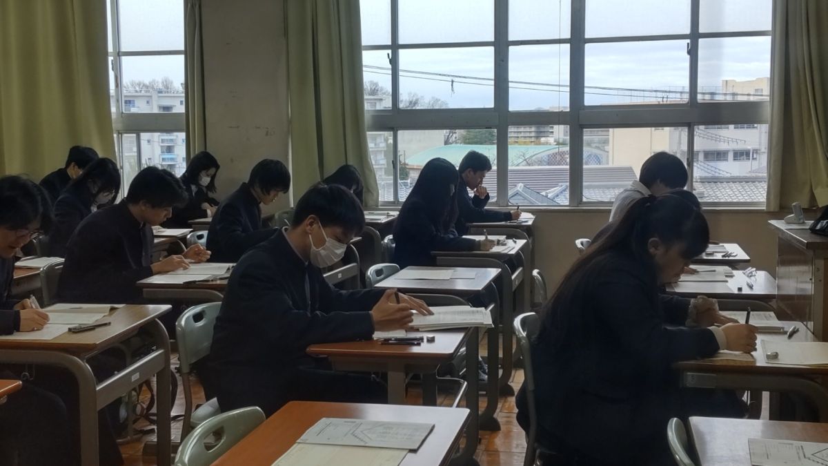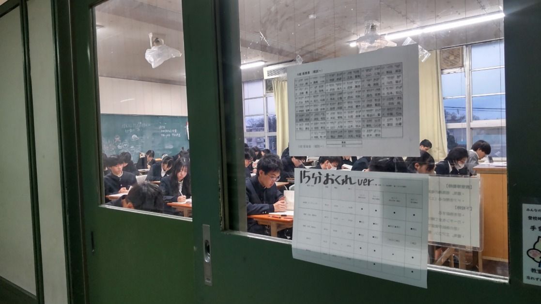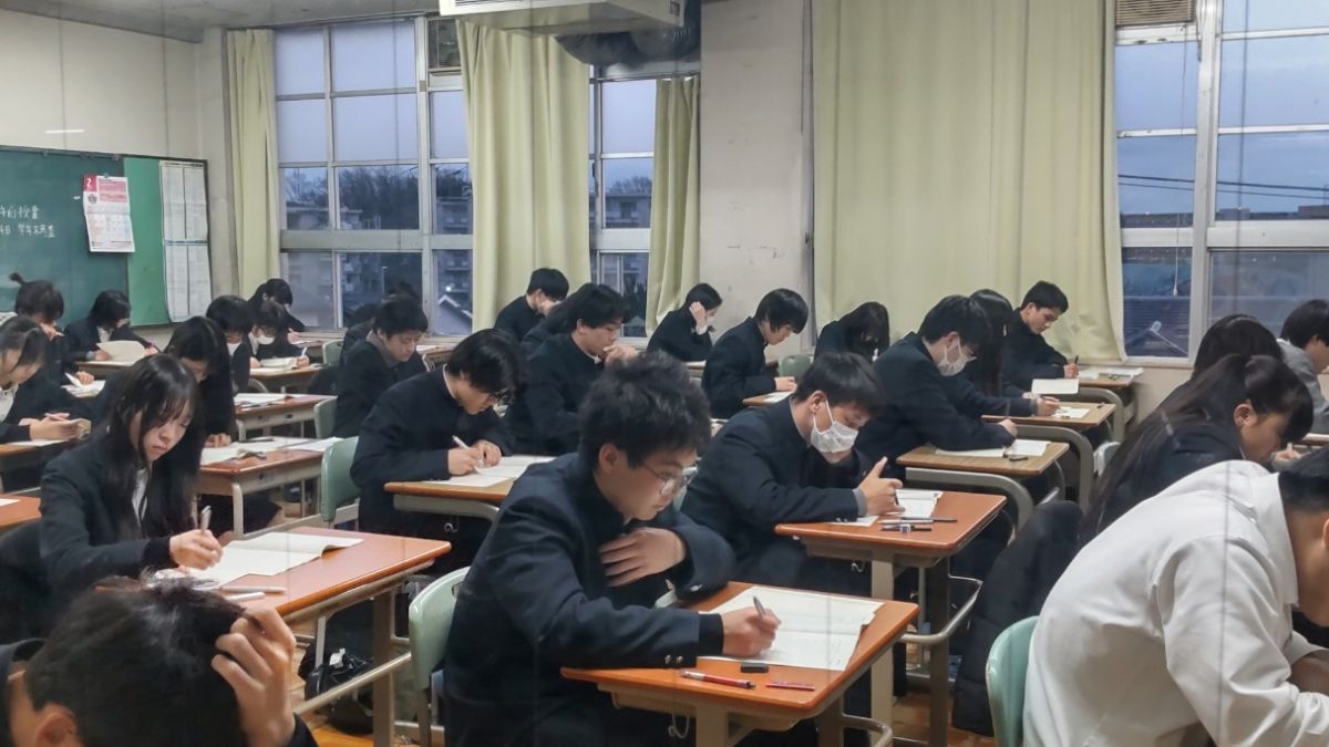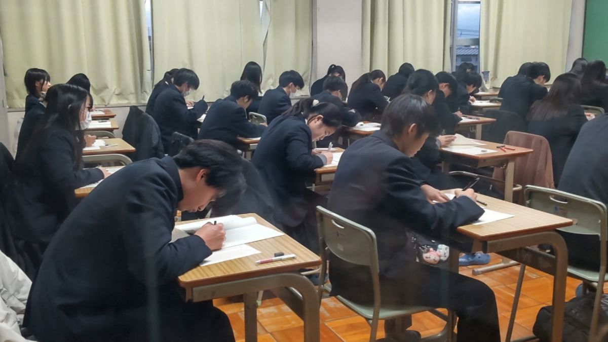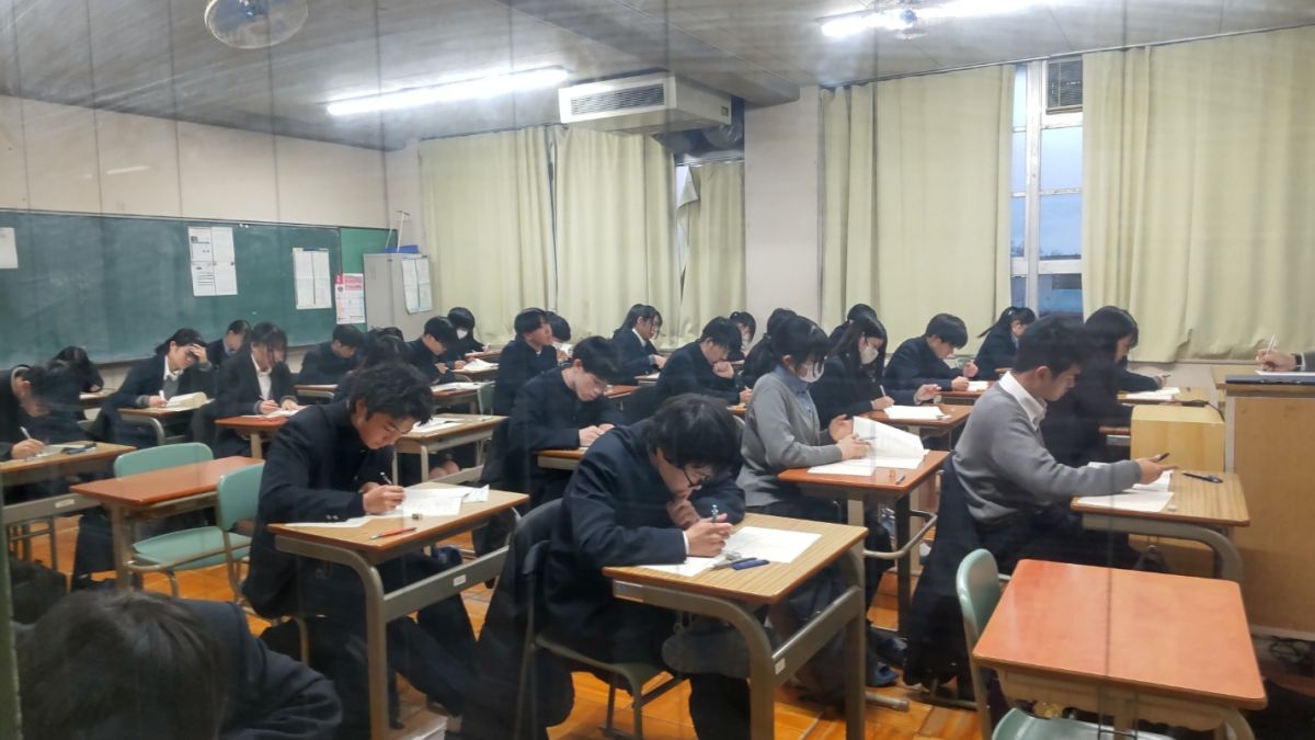 2月7日(土)2学年全校模試を実施しました。本日の模試は選択コースにて試験時間が変わります。最長は国公立文系と国公立理系コースで8時20分より19時40分まで。本番以上にきつい。しかも「情報」は2月6日(金)の放課後に実施。私立文系コースの生徒は9時30分から14時40分までが全員受験で、14時50分からの地歴・公民・数学は選択。私立理系は11時20分から19時40分まで。朝から本当によく頑張る生徒たちですが、昼にちょっとハプニングが!食堂が混みすぎて、大行列発生。食事をしっかりとってもらうため、午後の試験開始時間を15分遅らせました。最後の生徒はカレーを大急ぎで食べて試験会場にダッシュ。午後もしっかり受験です。