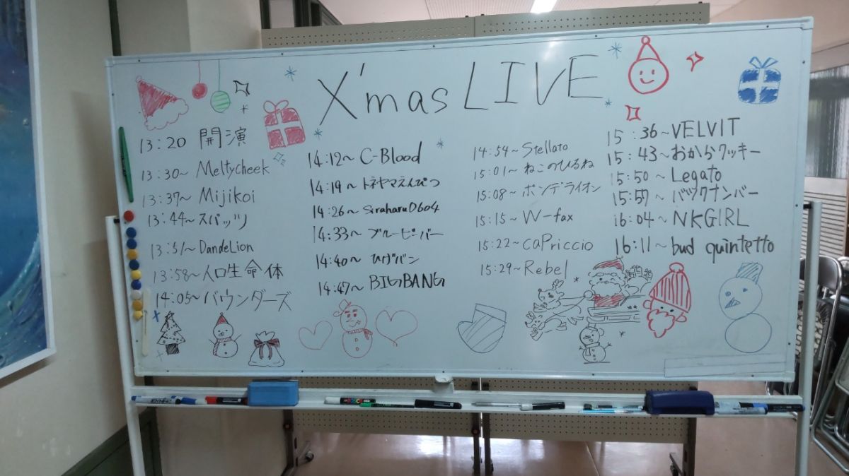 12月22日(月)13時30分より16時30分まで、視聴覚教室において、恒例の軽音部クリスマスライブが開催されました。今年は24バンドが出演。熱い演奏で今年も年末を大いに盛り上げてくれました。大勢の生徒に加えて保護者の方も来場下さり、部員の演奏にたくさんの拍手を贈ってくださいました。20日(土)の学校説明会でも演奏を披露してくれた軽音部のみなさん!本日も素晴らしいライブを有難う!