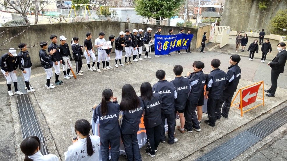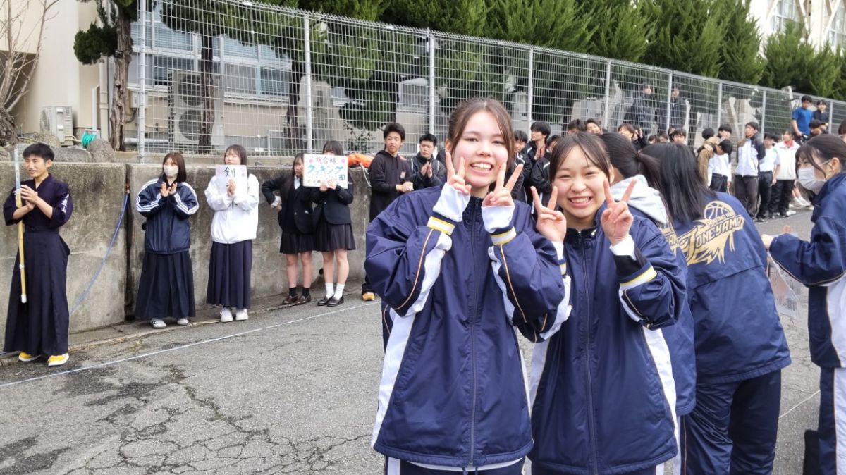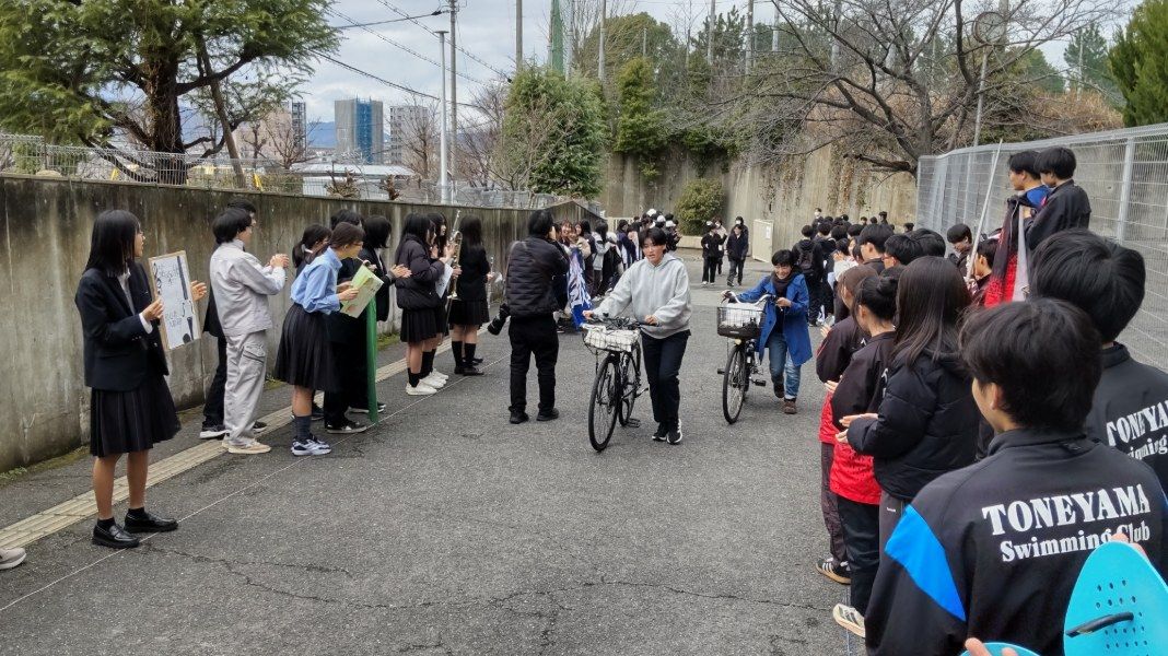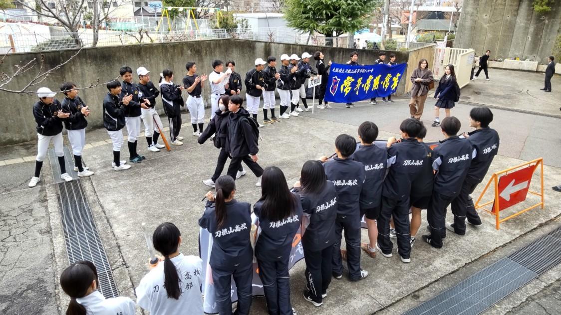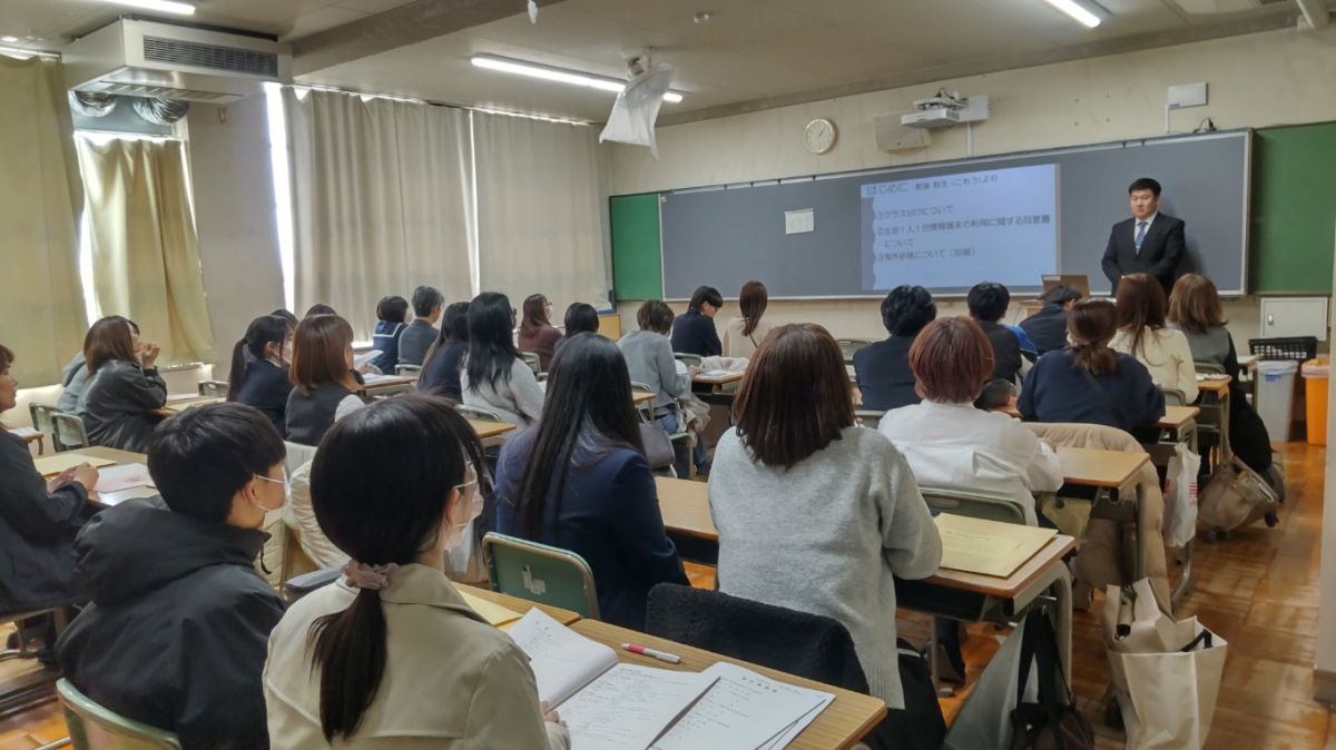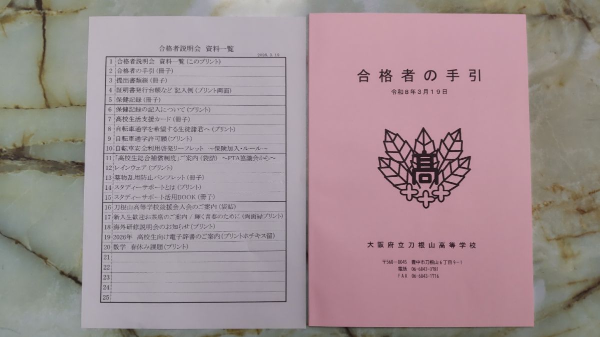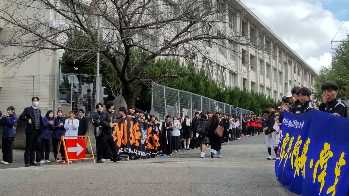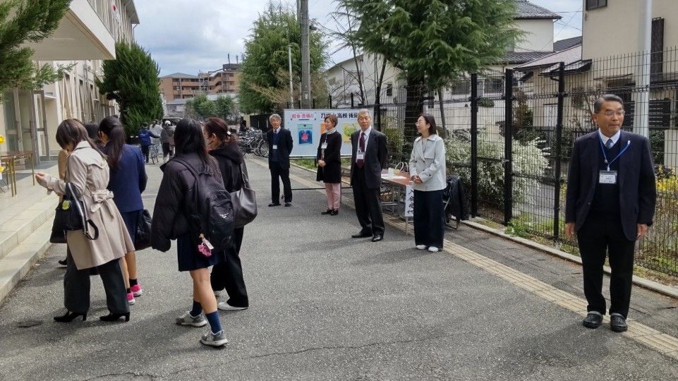 3月19日(木)13時より、合格者説明会を開催しました。12時30分過ぎには多数の合格者が登校してきました。正門から下足所に至る坂には部活生たちが花道を作ってお出迎え。今年も熱烈大歓迎で、「おめでとうございます」の大合唱。合格者や保護者のみなさんの喜びはいっそう高まったと思います。中には中学校の後輩なのか、相互にハイタッチをして大盛り上がりする刀根山生も。合格者と保護者のみなさんは、その後、割り当てのクラスに入室いただき、電子黒板の映像や配付された資料を見ながら、担当者からの説明を聞いて頂きました。4月の桜が満開のころには、刀根山生の制服を着て、また、この坂を上がってきてもらうことになります。しっかり準備を整えてくださいね。みなさんの入学を今から心待ちにしています。