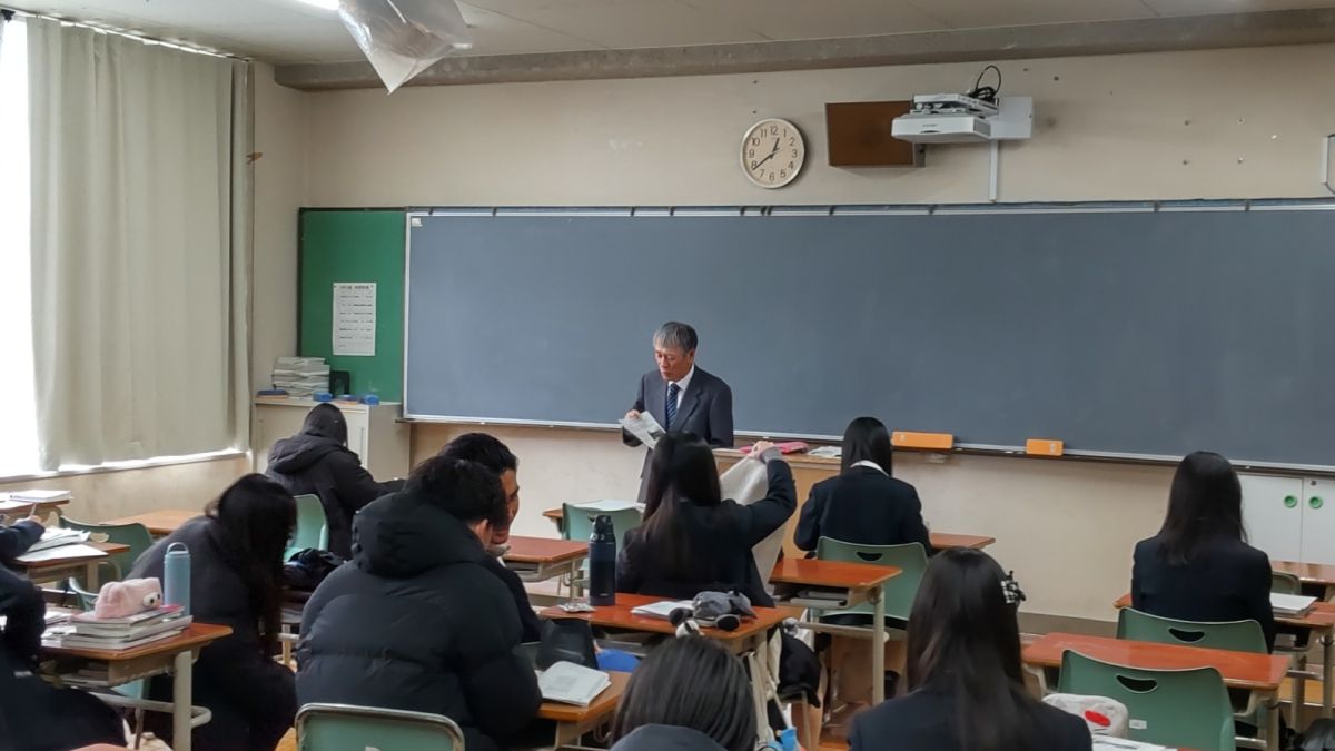 1月28日(水)12時35分より放送にて、3年生の生徒のみなさんへ、同窓会の折田会長から同窓会加入の呼びかけがありました。本校の同窓会は校章にもなっているキンモクセイから名づけられ「もくせい会」と言いますが、卒業生に記念品を贈呈していただいたり、周年行事の支援をしたりいただいたりと、様々な形で本校の発展、卒業生の親睦に寄与してくださっています。本日は案内文の配付、同窓会活動についての説明と加入のお願いがありました。47期生のみなさんも是非、同窓会に加入して、卒業後も母校への応援と相互の親睦を深めていってください。