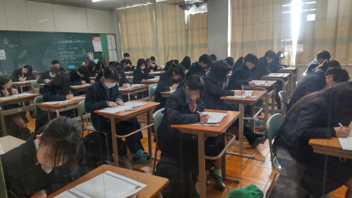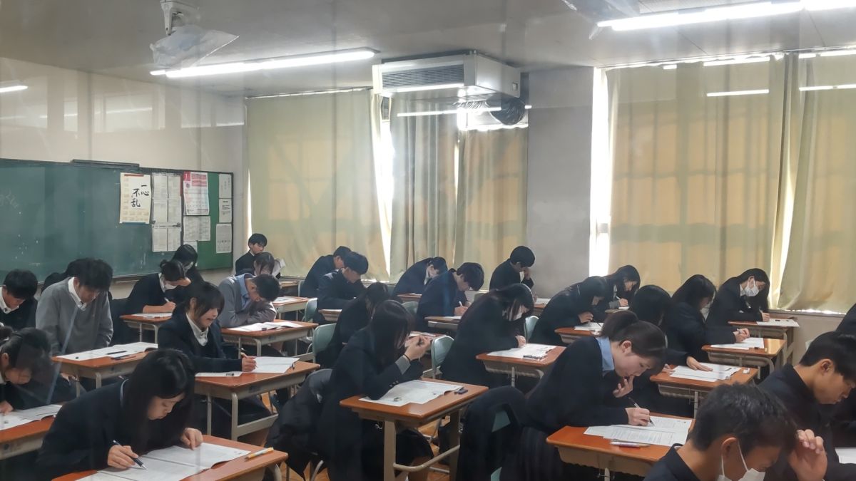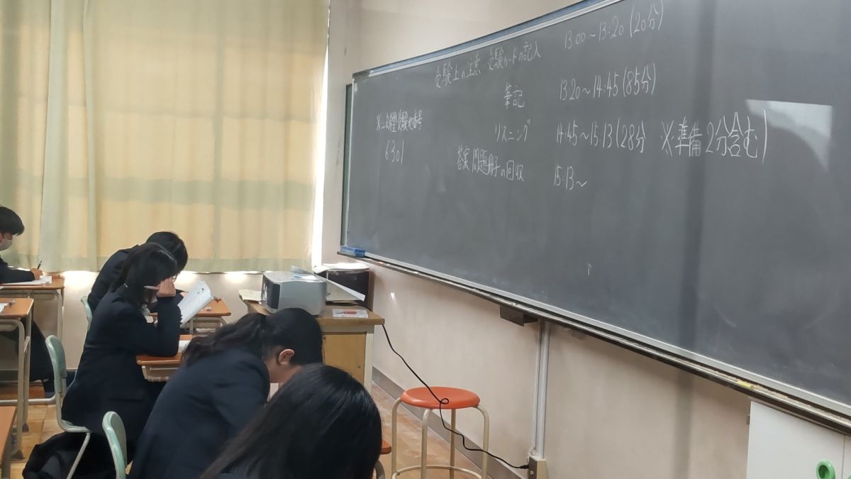 1月16日(金)5・6限、1年生2年生は全員が英検2級・準2級を受験しました。本校は全員受験を行いますので、英検会場校となり、教室で受験することができます。生徒たちは真剣に筆記、ヒアリングに挑戦。合格して資格取得者となり、さらに自信をつけ英語活用能力を高めていきましょう。