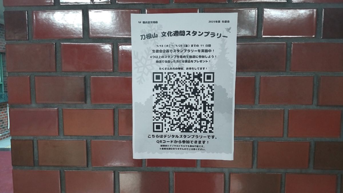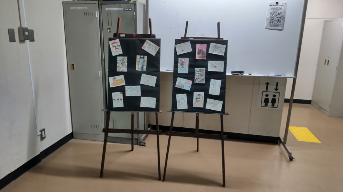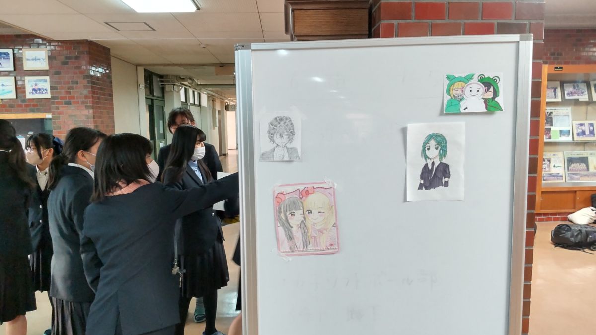 美術部や漫画研究部の力作がエレベーター前や正面玄関に展示されています。部員のみなさんの才能は本当に素晴らしい!見ていて楽しいです。スタンプラリーのポイントにもなるかもしれません。是非チェックしてください。