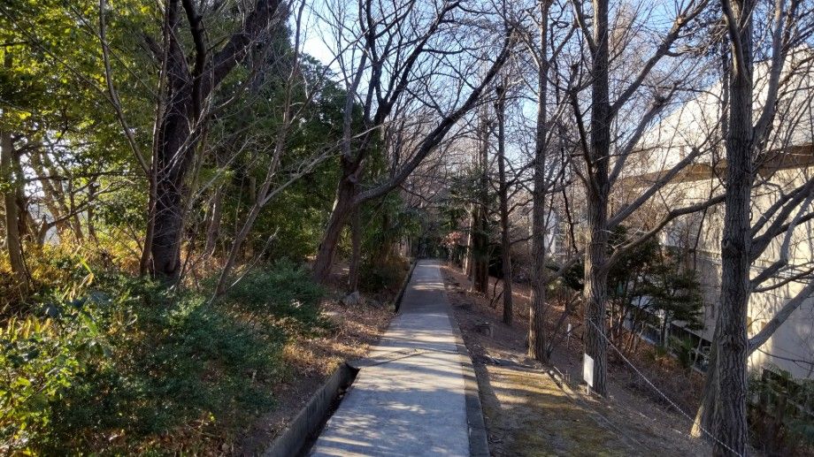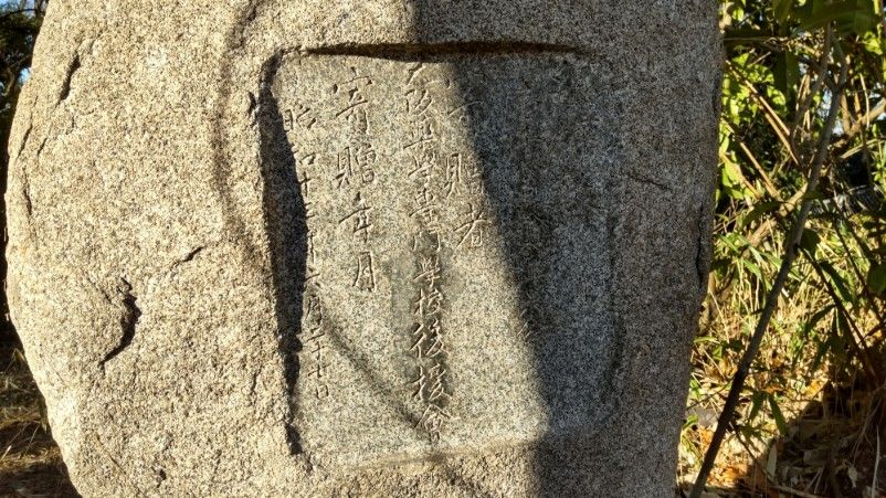裏山はすっかり冬枯れ。多くの木が葉を落としたり、草が枯れたりして、見通しが大変良くなっています。冬の期間はあまり裏山にはいかないのですが、今日は久しぶりに裏山の様子を見に行きました。竹林の奥には「ハーブ園」があるのですが、ずっと気がつかずにいました。煉瓦で囲んであるところです。また、その奥には「薬園碑」が残っていました。技師さんや業者さんが大きくなりすぎていた木を伐採してくれたおかげで、すぐに見つけることができるようになっています。本校は「大阪大学薬学部」の跡地を校地としています。このあたりから西側の斜面が「薬草園」跡になるようで、記念の石碑が残っているのですが、設置はなんと昭和13年6月27日(今から88年前)。設置者は阪大薬学部の前身である「大阪薬学専門学校後援会」でした。裏山には貴重な動植物だけでなく、歴史のお宝も残っていますよ。
