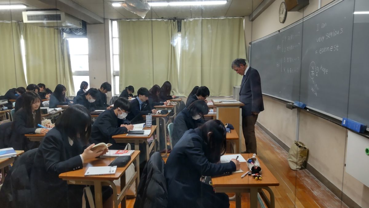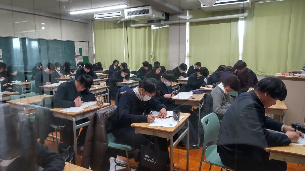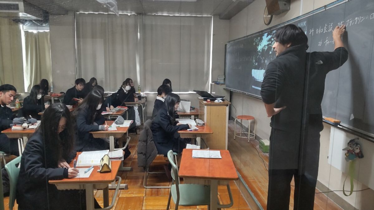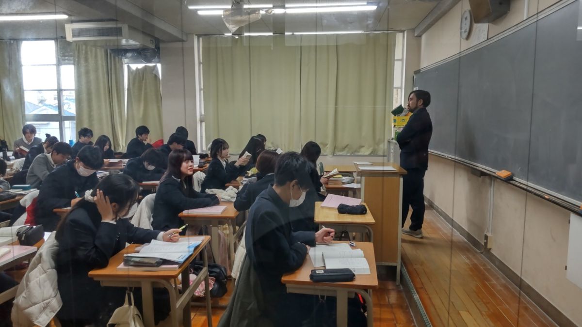 1月30日(金)4限、高校3年間の最後の授業です。生徒たちは普段通り、授業をしっかり受けていました。最後だからと気を抜いたり、特別なことをしたりせず、1時間1時間を大切にするのが本校生徒の良いところ。体育の授業では声をかけると「楽しいです!」と風と雪の中でも元気にプレーしていました。刀根山生の「高校生活をまじめに楽しむ」校風をしっかり引き継ぎ発展させてきてくれた47期生たちです。