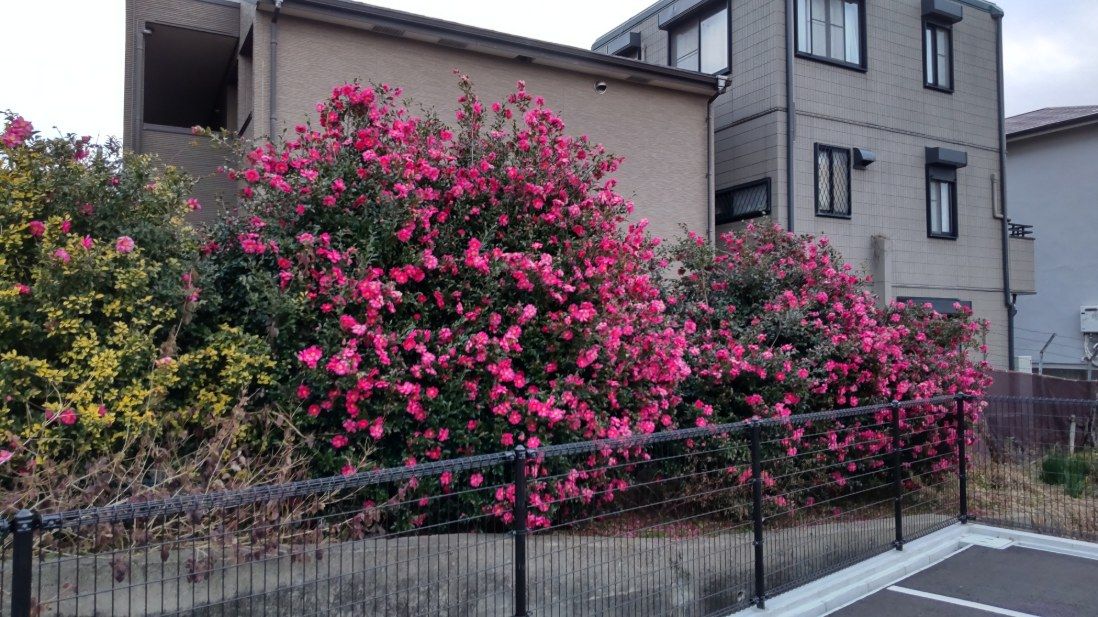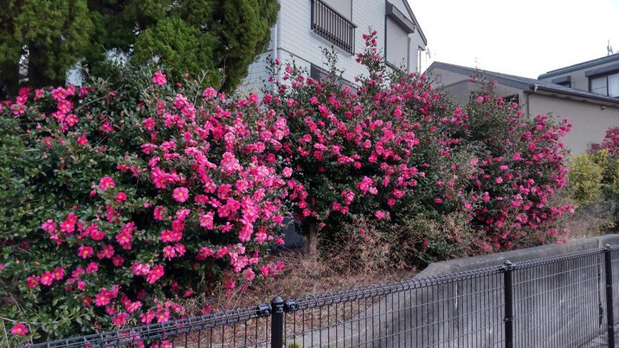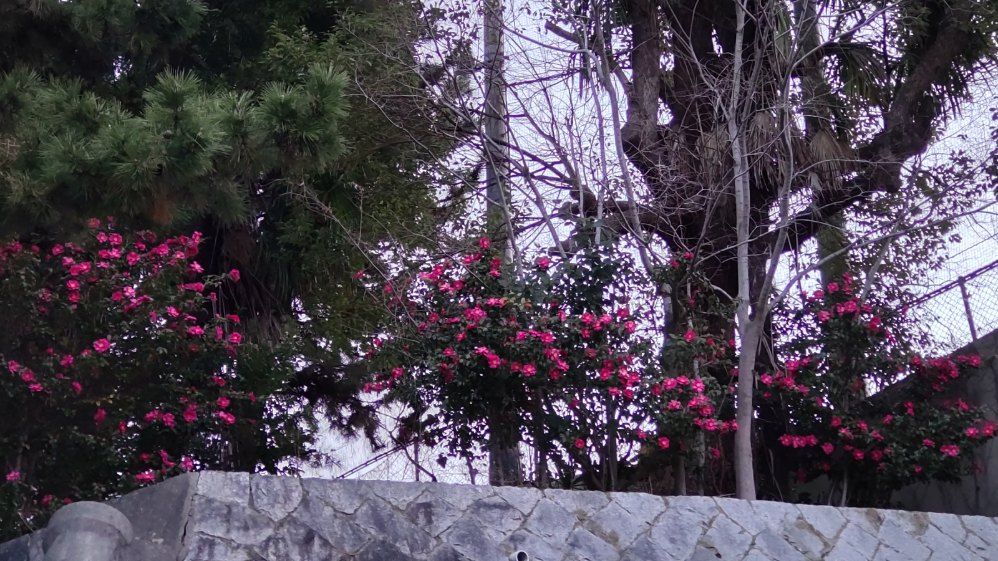 1月7日(水)本校の椿が満開を迎えています。本校には校舎東側の裏山法面下から農園までと校庭西園地に椿が植わっていますが、今、赤い綺麗な花をたくさんつけています。特に校舎東の農園近くは見事です。是非一度見てください。