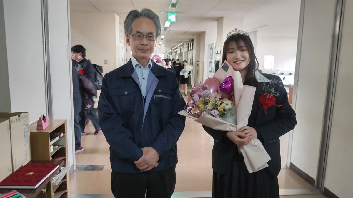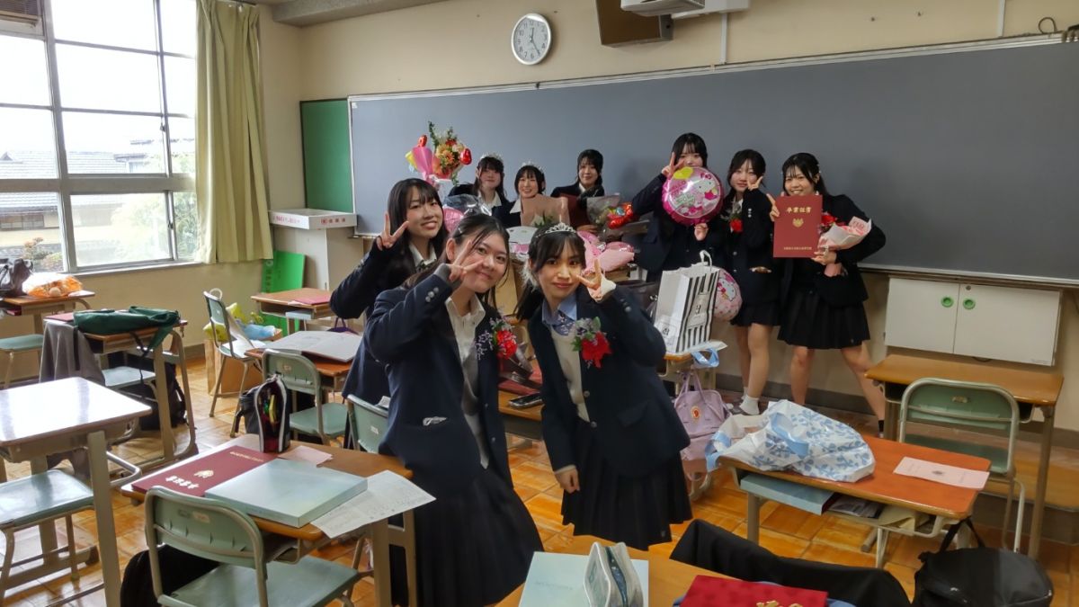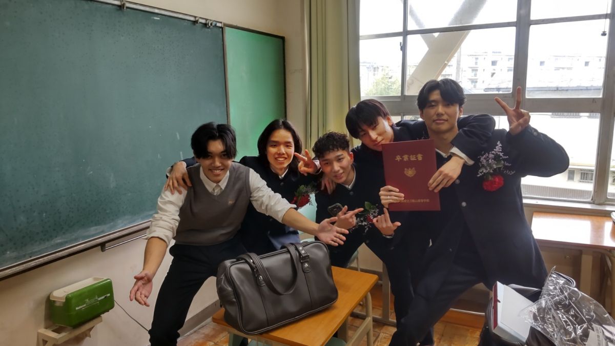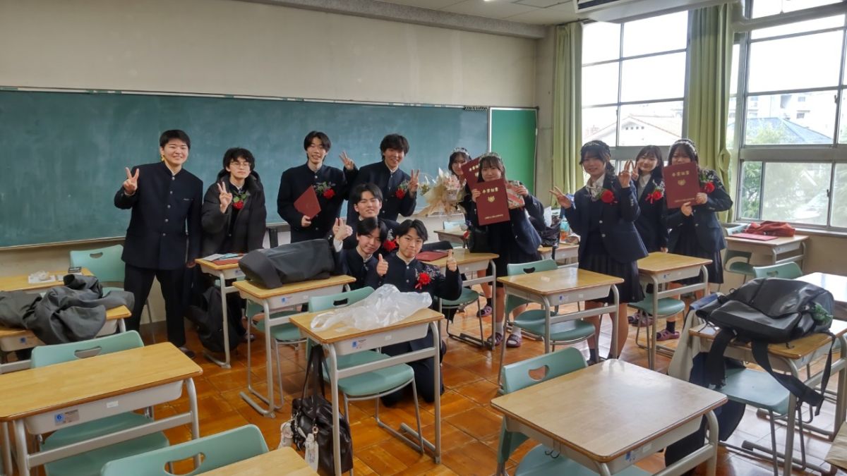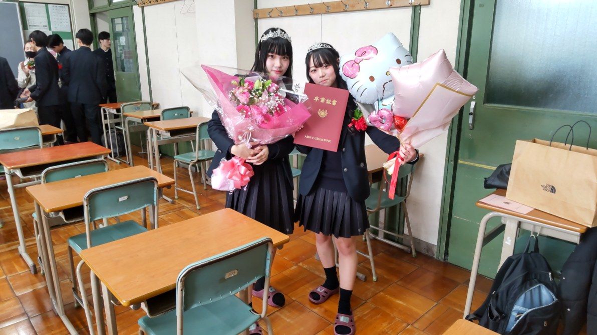 式の後、校内では記念の品を渡したり、写真を撮ったりで大変賑やかでした。式中は厳粛、式後は思いっきり楽しむ。公私の区別、メリハリをしっかりつけられる刀根山生の本当に良いところです。私も写真に入れてもらうことができました!下足所前や正門前の坂で、後援会のみなさんが入会案内をされていました。本日も多数の方が入会してくださり、本当に有難いことです。